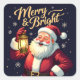 Sticker Carré Merry Bright Santa Holding Lantern Illustration