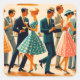 Sticker Carré Mi-siècle Moderne Martinis Danser Cocktail Party