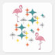 Sticker Carré Mid Century Modern Atomic Starburst Pink Flamingos