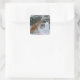 Sticker Carré mignon akita assis avec un bonhomme de neige dans