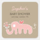 Sticker Carré Mignon Éléphant Rose Fantaisiste Fête de Naissance