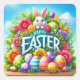 Sticker Carré Mignonne lapin de printemps/Pâques avec oeuf