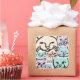A simple and expressive set of cat faces drawn in bold black lines on soft pastel backgrounds. Clean, modern, and playful.