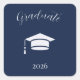 Sticker Carré Modern Editorial Script Navy Photo graduation