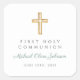 Modern Green Religious Cross Boy First Communion Square Sticker.