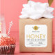 Create custom packaging stickers for your honey jars using this modern Honey Product Label design, featuring a minimal layout, honey bee graphic and fully editable text and colors.