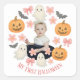 Faites de votre bébé une étape supplémentaire spéciale grâce à cet adorable Sticker pour bébé My First Halloween. Doté d’une couronne ludique de citrouilles, de fantômes, de bonbons, de fleurs et de feuilles entourant la photo de votre bébé, cet autocollant est parfait pour décorer des sacs de faveur, des cadeaux, des invitations ou des cadeaux. Personnalisez-le avec le nom de votre petit et le texte "Mon premier Halloween" pour créer une touche unique et charmante pour les fêtes et les célébrations. Une façon douce de se souvenir de la toute première saison éffrayante de votre bébé!