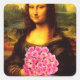 Sticker Carré Mona Lisa With Bouquet Of Pink Roses