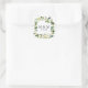 Conçus pour correspondre à notre collection de mariages en fleurs blanches, les autocollants carrés présentent vos initiales ou votre monogramme et date mariage encadrés dans une illustration de fleurs blanches et de feuilles verts.