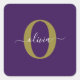 Sticker Carré Monogramme customisé Nom du script Purple White Go