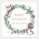 Sticker Carré Monogramme de feuillage hivernal de ruban rouge