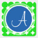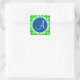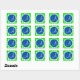 Des points verts dans des quartiers rapprochés créent un motif secondaire d'étoiles blanches. Un grand cercle bleu est entouré de lignes blanches, tandis qu'un seul cercle blanc initial grace le centre.