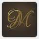 Sticker Carré Monogramme de sceau personnalisé en écriture dorée