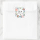 Sticker Carré Monogramme floral bleu et rose - blanc