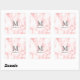 Un grand monogramme gris est au-dessus du nom sur un arrière - plan en marbre rose. Étiquette votre école fournit avec cet élégant autocollant en marbre.