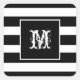 Sticker Carré Monogramme Initial Élégant Chic Cool Rayures Noir