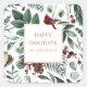 Sticker Carré Monogramme Joyeuses Fêtes Cardinal Feuillage d'Hiv