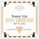 Monogrammed or jaune, noir et blanc art déco rétro mariage motif merci sticker. Un autocollant style années 1920. Le design se compose d'une pallette jaune or, noir et blanc et de motifs inspirés du style art déco et d'un motif rayé noir et blanc sur l'arrière - plan.