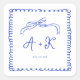Sticker Carré Monogramme Mariage bleu français tiré à la main