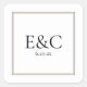 Monogramme typographique classique simple avec autocollant carré date mariage. Bordure mince double rayée en or et noir.