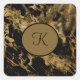 Sticker Carré Monogramme Noir Marbre Or Agate Moderne tendance