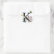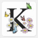 Sticker Carré Monogramme papillon aquarelle lettre K floral