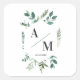 Sticker Carré Monogramme personnalisé à motif feuillu