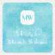 Sticker Carré Monogramme Turquoise Aqua simple et chic avec nom