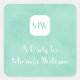 Sticker Carré Monogramme vert à menthe simple et chic avec nom