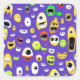 Monstres colorés avec de grands yeux ou des dents sur un arrière - plan violet