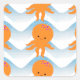 Sticker Carré Motif Octopus Orange Et Vagues Bleues