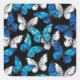 Sticker Carré Motif sans couleur foncée avec papillons bleus Mor