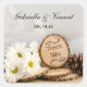 Personnalisez ces marguerites blanches rustiques naturelles Merci Mariage Woodland Favoriser les étiquettes Stickers et les affaler aux faveurs de la fête de votre douche nuptiale décontractée mais classe ou réception mariage. Ces charmants draps en bois d'extérieur ou adhésifs de la forêt inspo sont dotés d'une photographie de style nature surannée d'un bouquet de fleurs marguerites blanches, de cônes de pin brun, de tranches de bois avec les mots MERCI brûlés sur eux et d'un voile de mariée blanc avec un burlap et un arrière - plan satiné blanc.