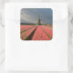 Sticker Carré Moulin à vent avec tulipes roses au printemps