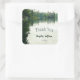 Une scène fluviale paisible d'une de mes photos personnelles est la toile de fond de cet autocollant de remerciement de mariage rustique - reflété dans l'eau calme mais légèrement ondulé sous un ciel couvert sont des verdures lointaines et des structures rocheuses - un effet d'aquarelle subtil a été appliqué à l'image | partie de la collection de Mariages rustiques du lac Mountain par katz_d_zynes >> https://www.zazzle.com/collections/119499271518309609