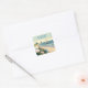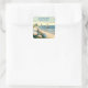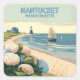 Sticker Carré Nantucket Beach Hydrangeas Lighthouse Rétro