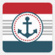 Design nautique avec décoration d'ancre en forme ronde sur bleu, rouge, gris et blanc rayé arrière - plan