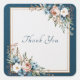 Embrace a timeless, rustic elegance with this stunningly beautiful floral thank you sticker. The design features a deep, textured navy blue background, creating a sophisticated canvas. A crisp, white, paper-textured square panel provides a clean central space for your message, elegantly framed by a minimalist, thin gold border. In opposite corners, gorgeous, painterly watercolor floral arrangements bloom with dusty pink roses, delicate dusty blue flowers, and white anemones. These bouquets are artfully interwoven with rustic accents like rust-colored berries, muted gold foliage, and sage green leaves, creating a rich, romantic, and natural feel. These stickers are perfect for businesses with a classic, elegant, or rustic-chic aesthetic, such as wedding planners or stationers, high-end florists, boutique gift shops, or fine art photographers for their client packaging. This versatile design can also be used to beautifully seal envelopes for weddings, bridal showers, or formal events, or as a sophisticated accent on party favors and gift wrapping.