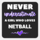 Ne sous-estimez jamais une fille qui aime le netball. Pour la fille ou la dame qui aime le netball. Grand cadeau pour Noël, anniversaires, fête des mères, "juste parce que" ou pour vous-même.