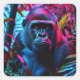 Un rendu numérique d'un grand gorille mâle dans une forêt tropicale avec éclairage néon stylisé.