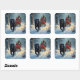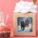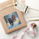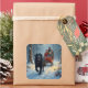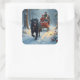 Sticker Carré Newfoundland Dog Snowy Sleigh Ride Christmas