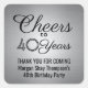 Ajoutez une touche de finition personnalisée à la fête d'anniversaire, des notes de remerciement ou des faveurs avec des autocollants de carré noir et argent personnalisés / scellés d'enveloppe. Tout le texte est simple à customiser ou à supprimer. Ce modèle est mis en place pour un 40ème anniversaire, mais peut facilement être changé en une autre année ou un autre événement, comme un anniversaire. Design est doté d'un arrière - plan en acier inoxydable brossé en argent, de calligraphie de script stylisée "Cheers to 40 years", et de la typographie minimaliste moderne message personnalisable en bas.