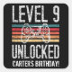 Sticker Carré Niveau 9 Déverrouillé 9e anniversaire Personnalisé
