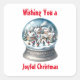 Cet autocollant de Noël personnalisable présente un globe de neige avec des gens qui aiment la neige.
