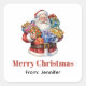 Stickers avec une jolie image de Noël. Un Père Noël traditionnel dans sa tenue rouge classique. Ses bras pleins de cadeaux. Prêt à apporter des cadeaux à tous.