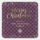 Des autocollants Joyeux Noël en or et en violet personnalisés. Personnalisez facilement ces autocollants violets et noirs à damiers Noël avec votre nom de famille.