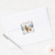 Des autocollants de Noël super mignons. Il a une aquarelle d'air illustration d'un Shetland Pony debout dans un terrain de vacances capricieux pendant une journée d'hiver enneigée avec en toile de fond des pins.