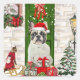 French Bulldog Noël assis à l'extérieur de la maison décorée avec la couronne de Noël, le sapin de Noël est une idée cadeau de Noël parfaite pour les amoureux de les chiens.