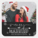 Autocollants de scellement d'enveloppe pour les vacances de Merry & Married | Autocollants noirs de Noël pour jeunes mariés. Les mots MERRY et MARRIED sont écrits en blanc avec une police amusante sur fond noir avec des flocons de neige, ce qui donne à l'autocollant une apparence élégante et très festive.