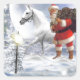 Sticker Carré Noël Père Noël avec Cheval Blanc